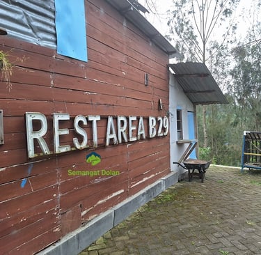 Sekitar pukul 08:05 akhirnya kita sampai di Rest Area. Sedikit info nih buat Sobat dolan yang baru berkunjung ke B29, ada dua rest area menuju di puncak B29. Rest area pertama ada di Argosari bawah, di dusun Gedok. Tepatnya di Gapura pertama masuk ke Desa Argosari. Terdapat warung makan untuk istirahat dan juga warga yang menawarkan ojek ke Puncak B29. Rest area ini dikelola oleh warga lokal Argosari.